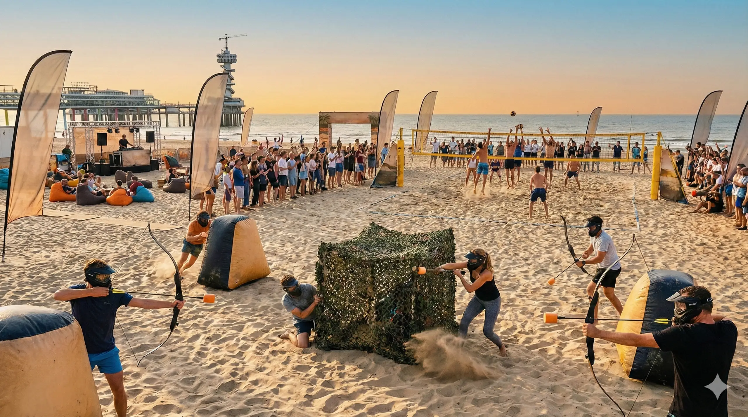 Archery Tag is an active and exciting team game that combines elements of archery, dodgeball, and paintball. Teams compete against each other on the beach in Zandvoort using specially designed bows and arrows with soft foam tips. After a brief instruction on bow usage and the rules, the game is played in various formats. The game is safe, accessible to all skill levels, and guarantees plenty of action, laughter, and team spirit. This activity is offered by our partners Beach Events and Pep Sports. Both providers will submit a proposal.