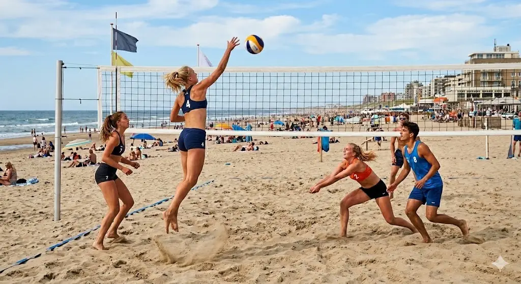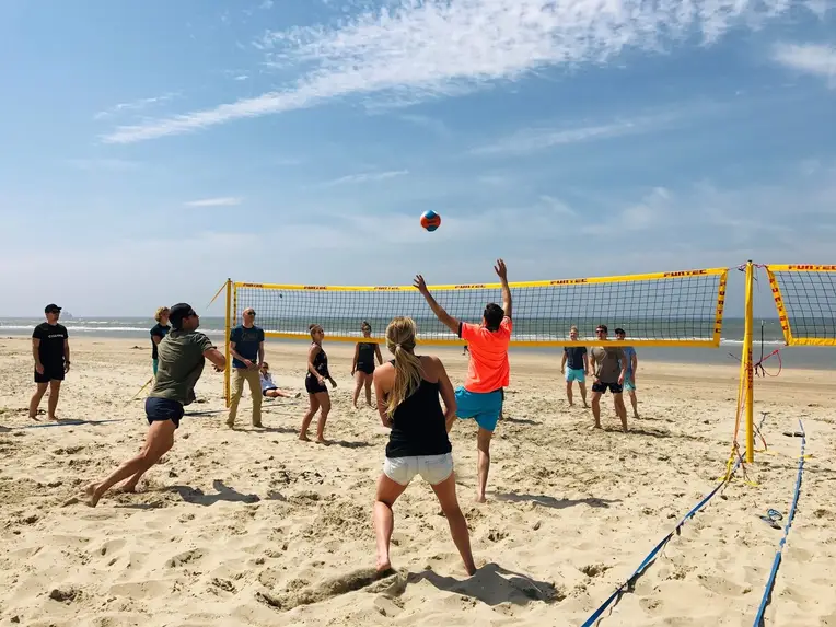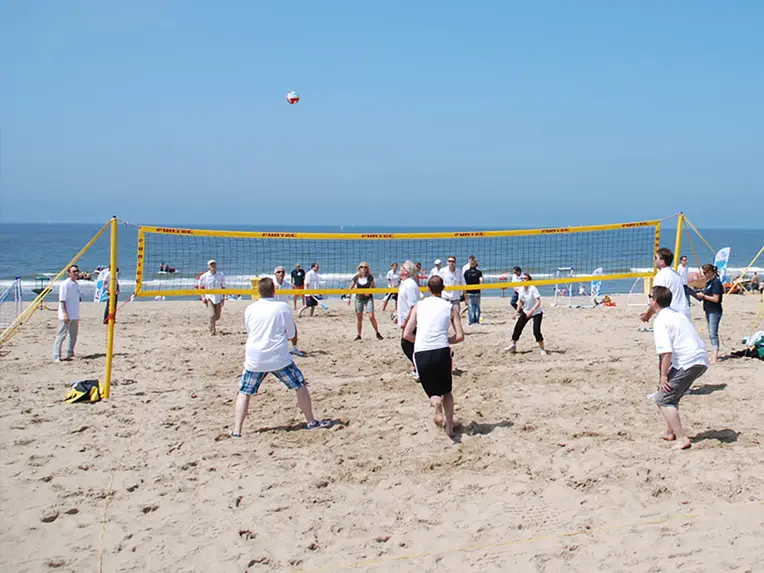 Beach volleyball is the ultimate beach sport and perfect for team building on the beach in Zandvoort. Under the guidance of experienced instructors, basic skills are taught, after which games are played in a tournament format. Whether you are experienced or playing for the first time, beach volleyball is accessible and offers lots of fun. The activity can be combined with other beach activities for a full day program. This activity is offered by our partners Beach Events and Pep Sports. Both providers will submit a proposal.